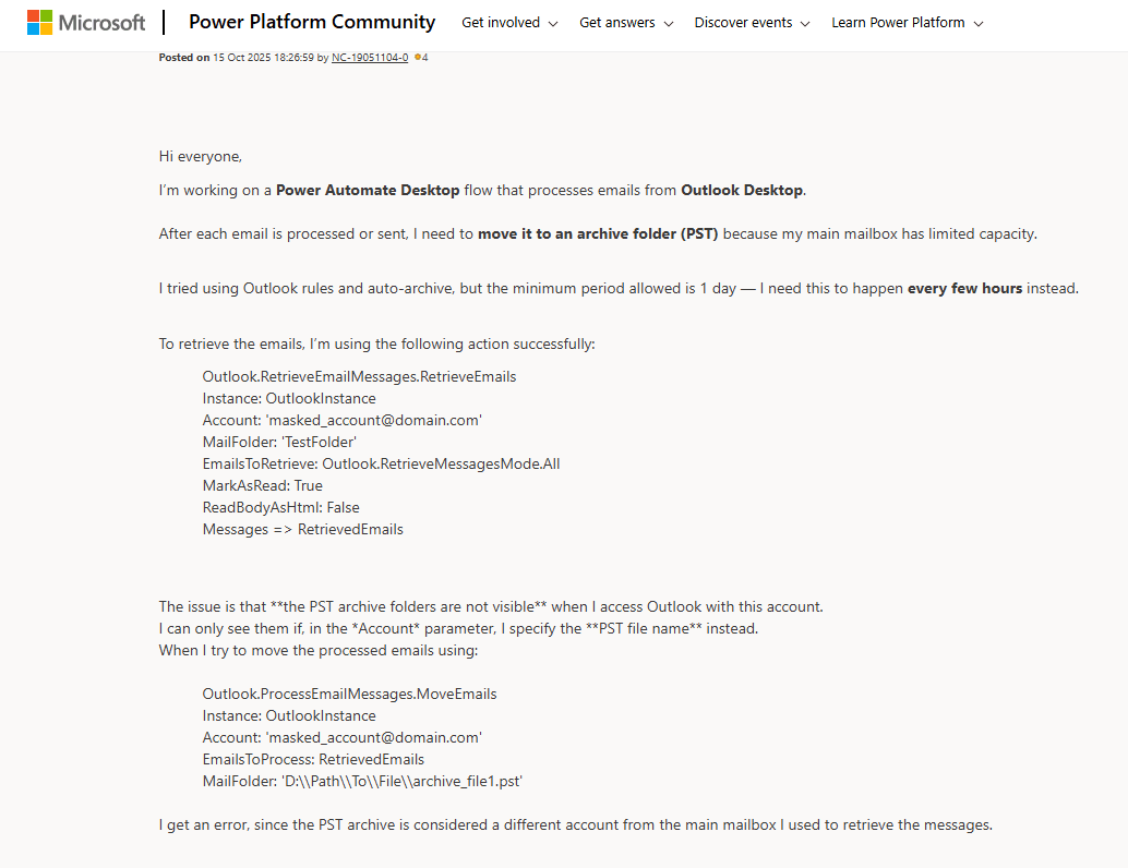Ongelma koskee yleensä käyttäjiä, jotka arkistoivat sähköpostinsa pienentääkseen postilaatikon kokoa tai siirtääkseen tietoja laitteiden välillä. Etenkin yrityskäyttäjät voivat kohdata tämän virheen järjestelmäpäivitysten, profiilimuutosten tai arkistotiedostojen tallentamisen jälkeen ulkoisille tai verkkoasemille.