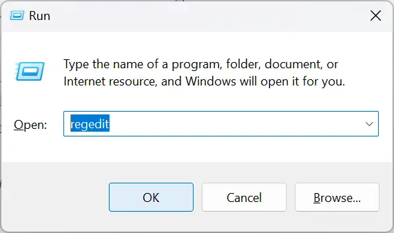 1. Paina Win+R ja kirjoita Regedit ja paina Enter.
