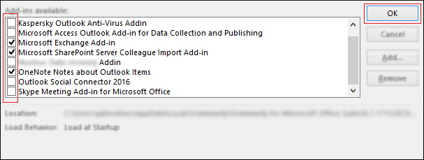 • Poista tai poista vanhentuneet lisäosat, jotka voivat olla ristiriidassa Outlookin kanssa ja aiheuttaa vastausvirheitä.