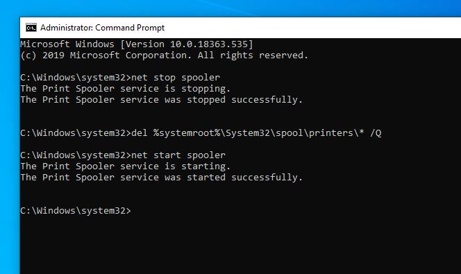 Sulje komentokehotus -ikkuna ja käynnistä tietokone uudelleen. Tarkista nyt tulostusjonon kohdalla oleva ongelma ratkaista.