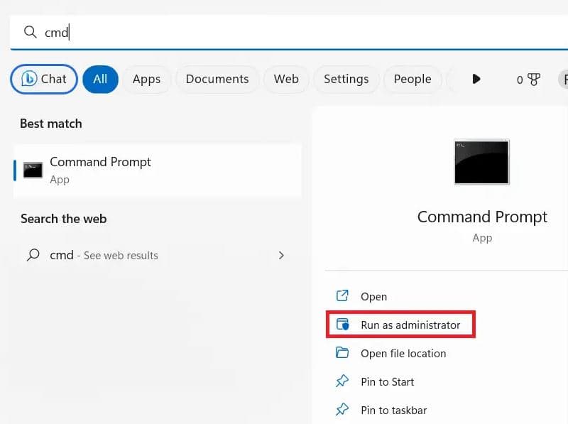 - Paina Windows-näppäintä + S, kirjoita cmd ja valitse Suorita järjestelmänvalvojana