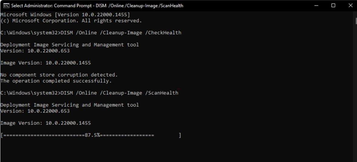 DISM /Online /Cleanup-Image /ScanHealth
