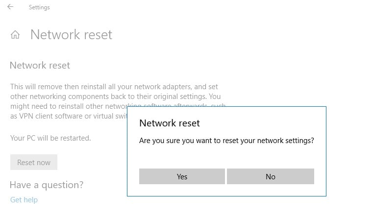 Tätä prosessia käyttämällä Windows 10 asentaa automaattisesti kaikki laitteellesi määritetyn verkkosovittimen uudelleen, ja se palauttaa verkkoasetukset oletusasetuksiinsa.