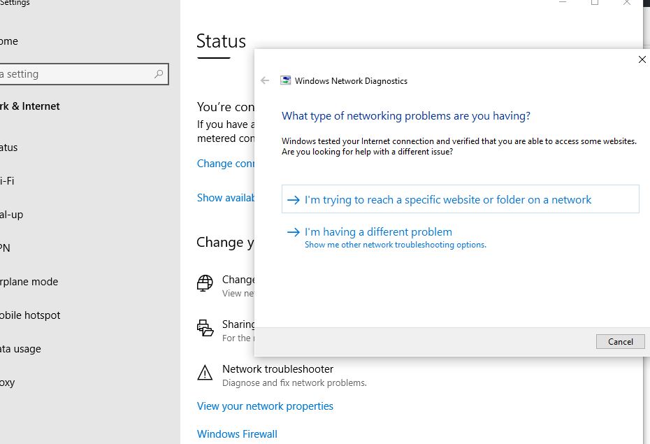 Jos käytät VPN: ää (virtuaalinen yksityinen verkko) tai välityspalvelin, poista ne väliaikaisesti, aiheuttavatko ne yhteysongelman.