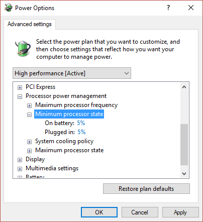Seuraavaksi näet kaksi tilaa, 'on akku' ja 'kytkettynä.' Muuttaa molemmatSuurin suorituskyky.Nyt tietokoneesi ei pysty sammuttamaan WiFi -sovitinta, jonka pitäisi korjata WiFi -irrottamisen ongelma Windows 10 -tietokoneesta.