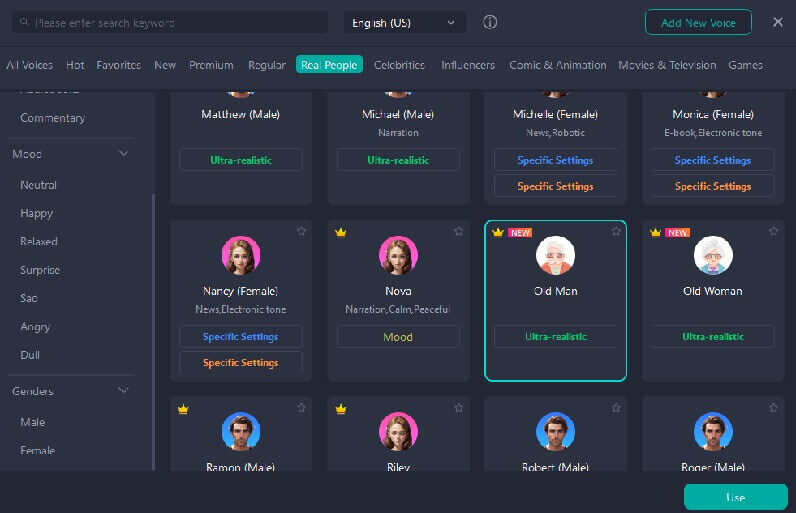 Realistinen ja rauhoittava ääni: Voxmaker voiValitse haluttu tunnelma ja sävy, kopioimalla vanhan miehen sävy.
