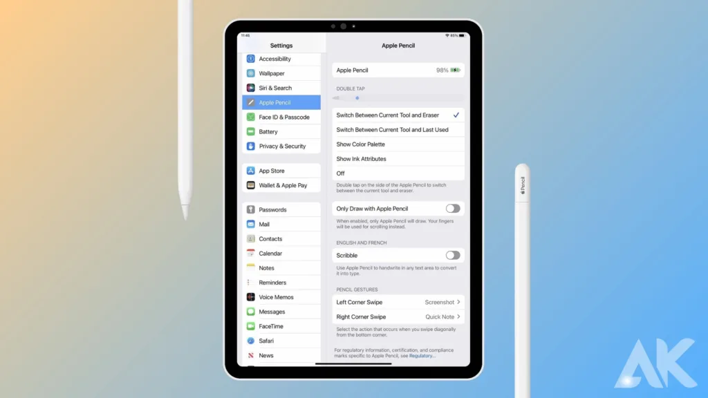 Tämä saa sen toimimaan paremmaksi ja reagoimaan nopeammin, kun ne on kytketty sopivaan iPadiin. Käyttäjät voivat myös muuttaa iPadin asetusten Apple Pencil 3 -asetuksia piirtämisen ja kirjoittamisen parantamiseksi muuttamalla esimerkiksi paineen herkkyyttä ja kämmenten kieltäytymistä.