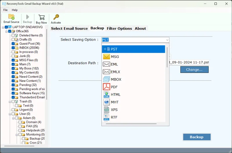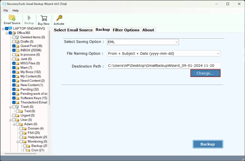 - Ratkaisu tekee luettelon kaikista Gmail -tilisi kansioista. Nyt sinun täytyyValitse kansio ja alikansiotJos haluat varmuuskopion tietoistasi tililtäsi.