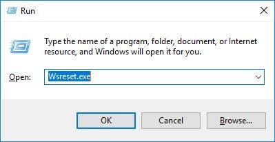 - tähän tyyppiWSRESET.EXEja ok tyhjentääksesi, jos jokin väliaikainen välimuisti aiheuttaa ongelman.