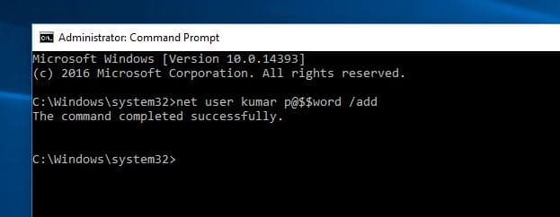 esim. jos uusi käyttäjätunnus on "Käyttäjä1", sinun on annettava tämä komento: