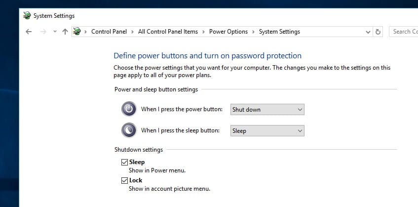 - NapsauttaaLaitteistot ja ääni-Virtavaihtoehdot-Valitse, mitä virtapainikkeet tekevät.