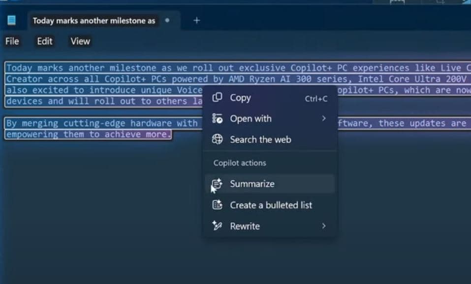 Napsauta tehdäksesi on toinen AI-ohjattu ominaisuus, joka parantaa tuottavuutta Copilot+ PCS: llä. Se tarjoaa kontekstuaalisia ehdotuksia, jotka perustuvat näytön sisältöön, virtaviivaistaviin tehtäviin, kuten kuvan muokkaamiseen tai tekstinkäsittelyyn.