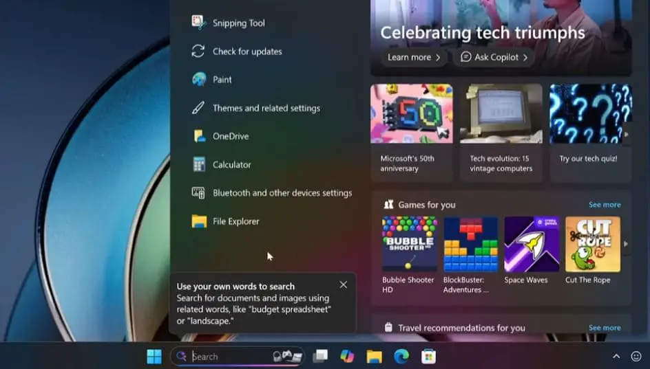 Windows -haku saa suuren päivityksen Copilot+ PCS: llä semanttisten indeksointimallien ansiosta perinteisen leksisen indeksoinnin kanssa. Tämä mahdollistaa luonnollisten kielihakujen, mikä helpottaa tiedostojen, valokuvien ja asetusten löytämistä.