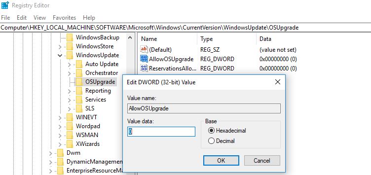 - Siirry osoitteeseen hkey_local_machinesoftwaremicrosoftwindowscurrent versioWindowsupDateosuPGrade