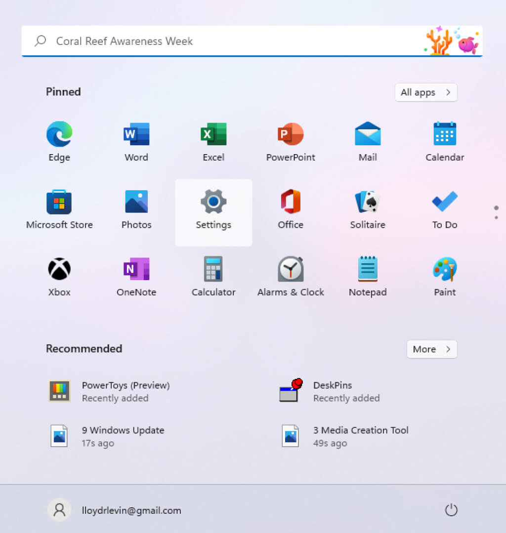 - Jos haluat tarkistaa Windows -päivitykset, avaa Käynnistä -valikko ja valitse Gear -kuvake.