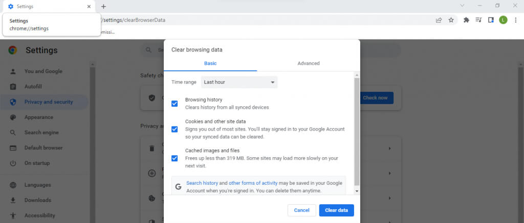 Korjaa 2: Poista evästeet ja tyhjennä välimuisti