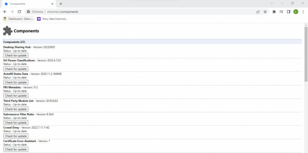 - KirjoittaaChrome: // komponentit/Chromen uuden välilehden osoitepalkissa. Tämä avaa luettelon Google Chromen komponenteista.