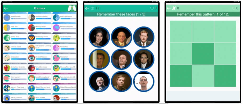Toinen ilmainen kognitiivisten kykyjen harjoittamiseen suunniteltu sovellus, Fit Brains Trainer on suunniteltu korkeamman älykkyysosamäärän rakentamiseen. Noin 360 pelin ja palapelin avulla sovellus kohdistaa eri aivotoimintoihin ja auttaa eläkeläisiä muistamaan.