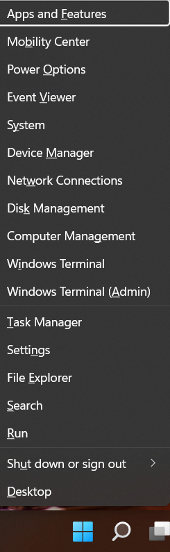 1.Napsauta hiiren kakkospainikkeella jtkWindows Käynnistäläsnä tehtäväpalkissa.