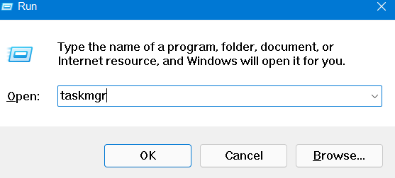 2.Kirjoita sen jälkeenTaskmgr.exeja painaKirjoittaakäyttää tehtävänhallintaa.