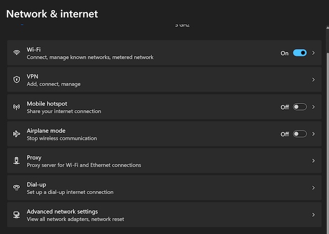 - Käynnistä Asetukset-sovellus > Verkko ja Internet > Verkon lisäasetukset > Verkon nollaus.