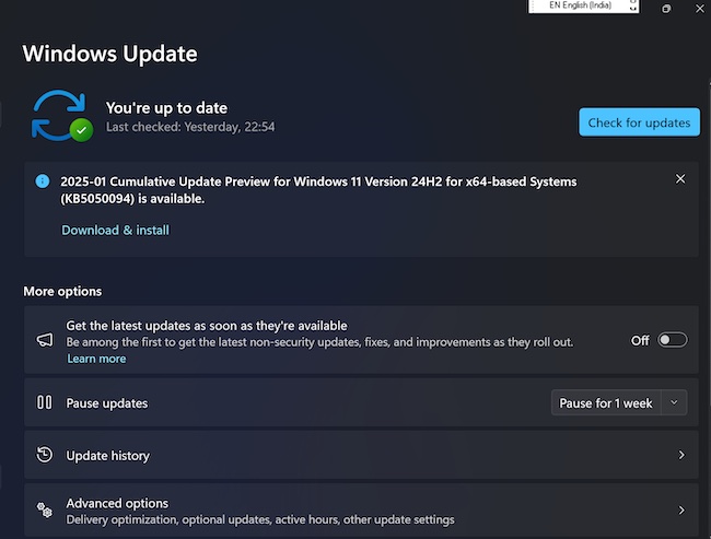 - Napsauta Tarkista päivitykset -vaihtoehtoa ja asenna kaikki odottavat päivitykset.
