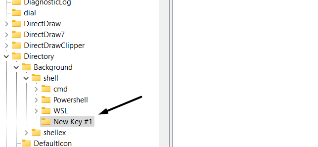 2.Napsauta hiiren kakkospainikkeellaKuoren laajennuksetavain vasemmassa ruudussa ja valitseUusi> avainvaihtoehto.