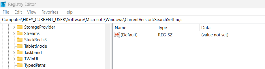 ComputerHKEY_CURRENT_USERSoftwareMicrosoftWindowsCurrentVersionSearchSettings