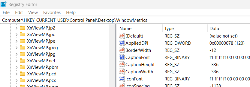 HKEY_CURRENT_USERControl PanelDesktopWindowMetrics