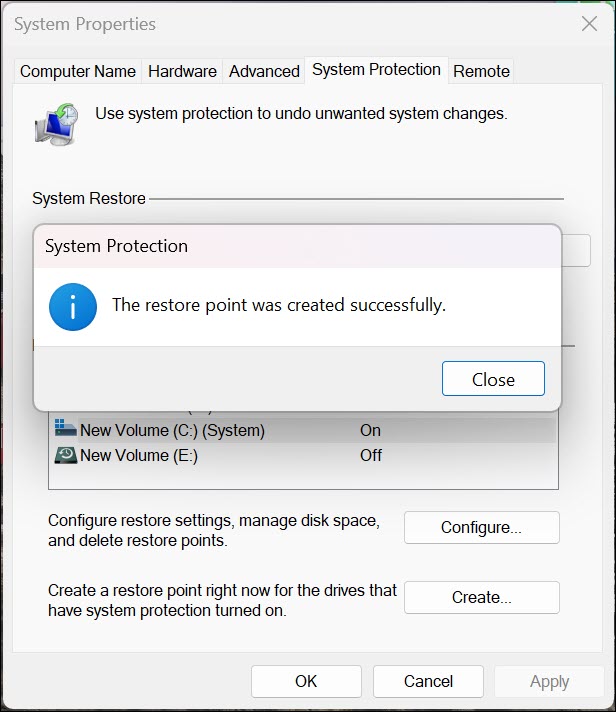 Luo uusi järjestelmän palautuspiste Windows 11 -tietokoneellesi