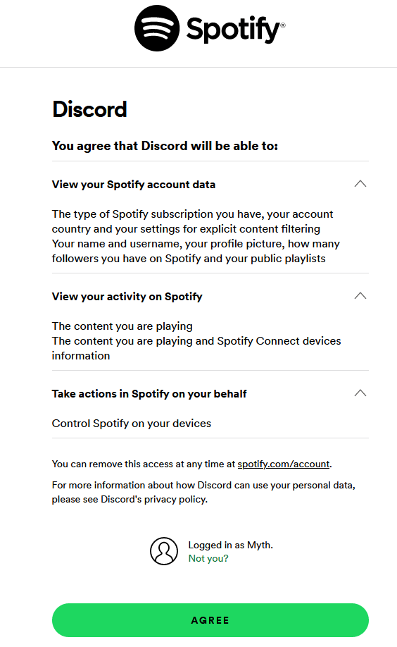 - Hyväksy Discordin käyttöoikeuden Spotify-tilillesi.