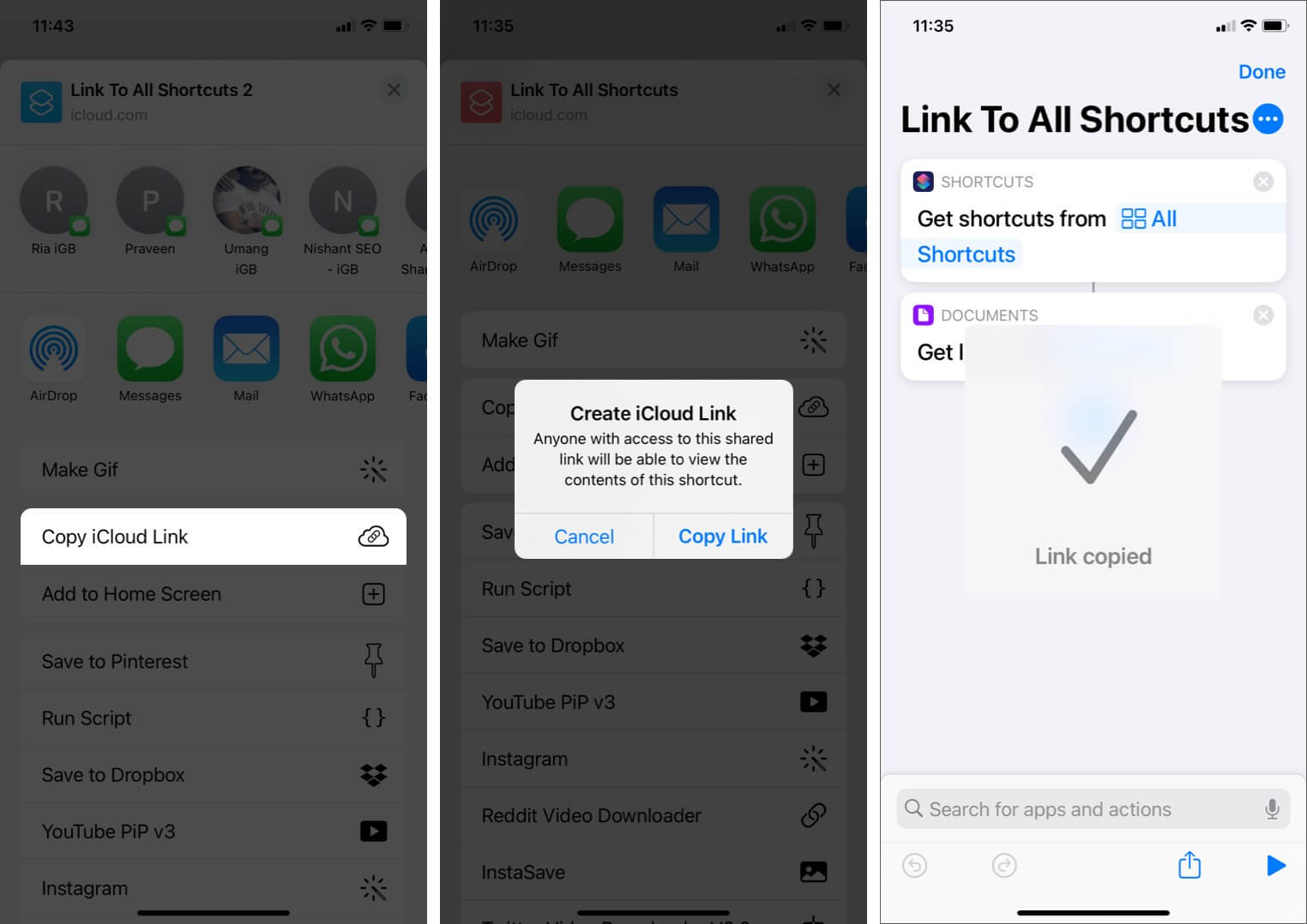 Nyt jakaa kaikki pikakuvakkeet napauta jako -linkkejä. Ja heti kun linkit kopioidaan. Voit liittää kopioidut linkit missä tahansa, jonka haluat jakaa ne.