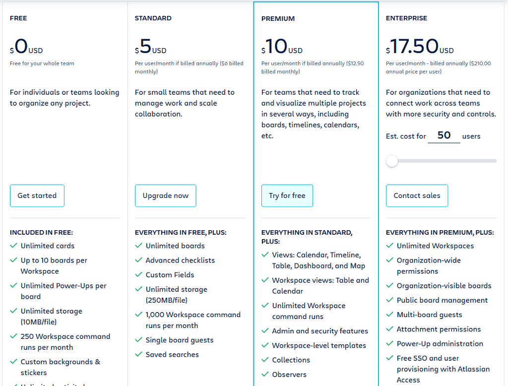 - Yritys:Alkaa 17,50 dollaria käyttäjää kohti kuukaudessa. Organisaatioille, joilla on useita suuria joukkueita.