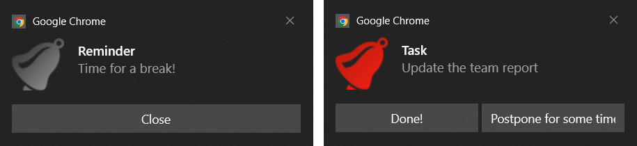 Katso muistutuslaajennus, joka ylittää perusteet tehtävänhallinnan hallintana, katso PI -muistutusta Chromelle.
