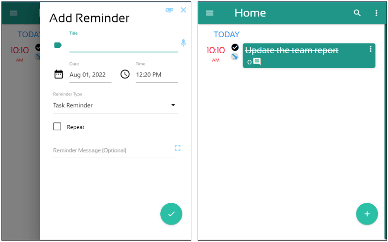 Seuraavaksi voit valita tehtävä- tai aikamuistutuksista. Ensimmäinen vaihtoehto ilmoittaa sinulle, kun aika on ylöspäin, kun toinen antaa sinulle mahdollisuuden merkitä se täydelliseksi tai lykätä sitä useimpiin haluamasi päivämääriin ja aikoihin.