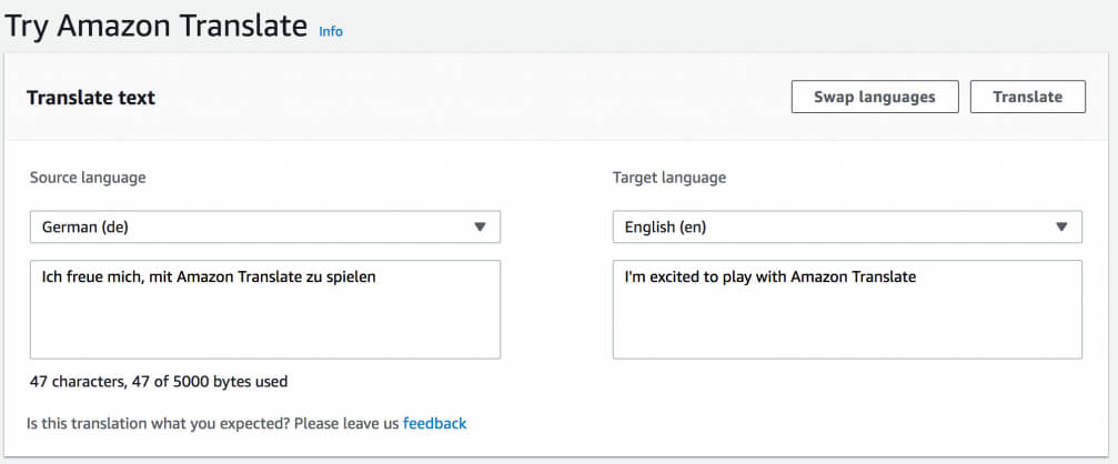 Amazon Translate on työkalu, joka tuottaa korkealaatuisia käännöksiä, ja koska se käyttää hermoston konekäännöstekniikkaa, sillä on hämmästyttävä tarkkuus ja se on myös melko nopea. Voit käyttää sitä kääntämään kopioitua tekstiä, verkkosivustoja tai verkkosovelluksia. Voit jopa integroida Amazon Translaten omiin verkkosivustoihisi ja sovelluksiisi JSONin avulla.