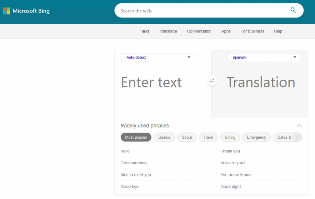 Bingiä ei ole otettu vakavasti pitkään aikaan, mutta kaikki muuttui tekoälyintegraation myötä. Microsoftin Bing Translator on tehokas pilvipohjainen työkalu, joka voi välittömästi kääntää reaaliaikaiset keskustelut, sovellukset, verkkosivustot ja paljon muuta. Se on saatavilla kaikille pöytäkoneille ja älypuhelimille, joten se on erityisen kätevä matkailijoille, koska se voi kääntää reaaliaikaisia keskusteluja puhekäännösalgoritmeillaan. Lisäksi voit käyttää sitä myös valikoiden tai kadunnimien kääntämiseen iOS- tai Android-mobiililaitteestasi, vaikka sinulla ei olisi Internet-yhteyttä.