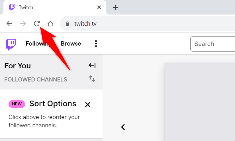 Kun olet vahvistanut, Internet -yhteys toimii, lataa Web -selaimesi Twitch -sivusto uudelleen nähdäksesi, korjaako se ongelmasi. Twitch -sivustolla tai verkkoselaimella voi olla pieni ongelma, jonka voit ratkaista ladataksesi sivuston uudelleen.