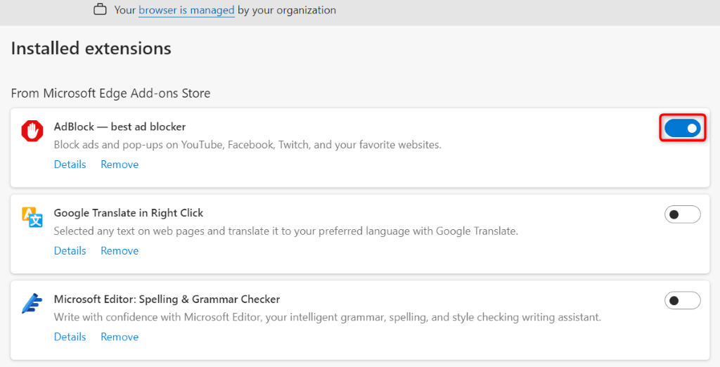 Yksi syy siihen, että Twitch ei latautuu, on se, että olet ottanut käyttöön mainossulkimen verkkoselaimessa. Monet käyttäjät ilmoittavat, että nykimistä latautuvat ongelmat, kun heidän ad-estäjän laajennuksensa olivat käytössä.
