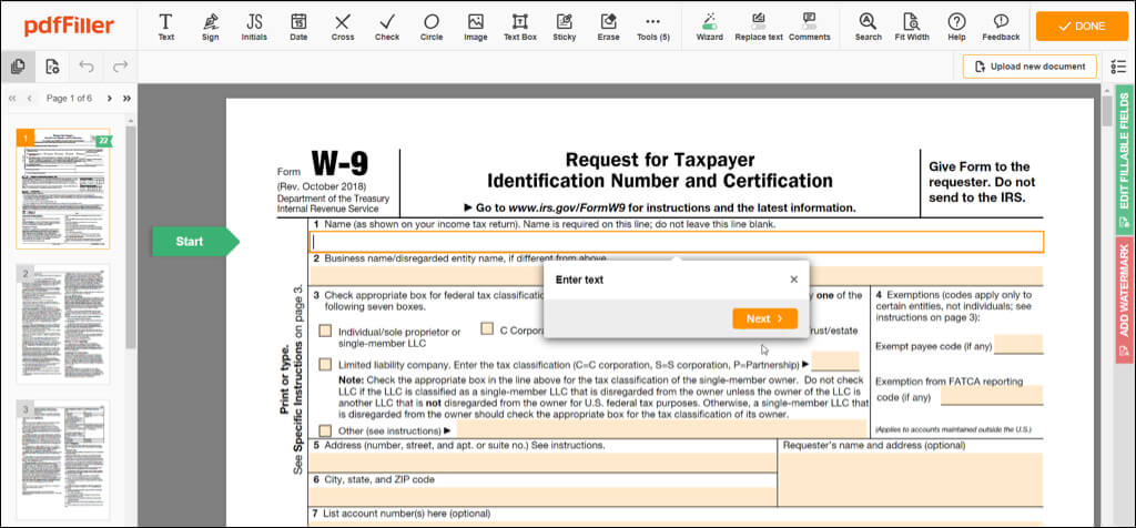 Näet sitten lomakkeesi avautuvan pdfFiller-verkkosivustolla ja kehotteita, joiden avulla voit kirjoittaa tekstiä tai allekirjoittaa tarvittaessa. Voit myös käyttää muokkaustyökaluja nimikirjaimien, X:n, valintamerkin, ympyrän tai päivämäärän lisäämiseen. Lisäksi voit korostaa, poistaa, pimentää, piirtää, lisätä kommentteja tai korvata tekstiä.