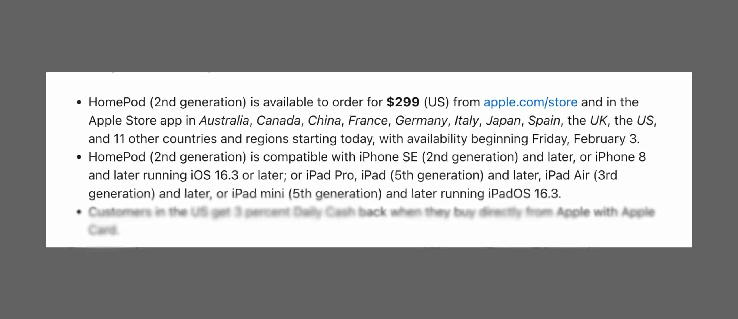 Samoin uusi HomePod 2 on yhteensopiva iOS 16.3: n iPhone -mallien kanssa ja se on saatavana tietyillä alueilla 3. helmikuuta alkaen.