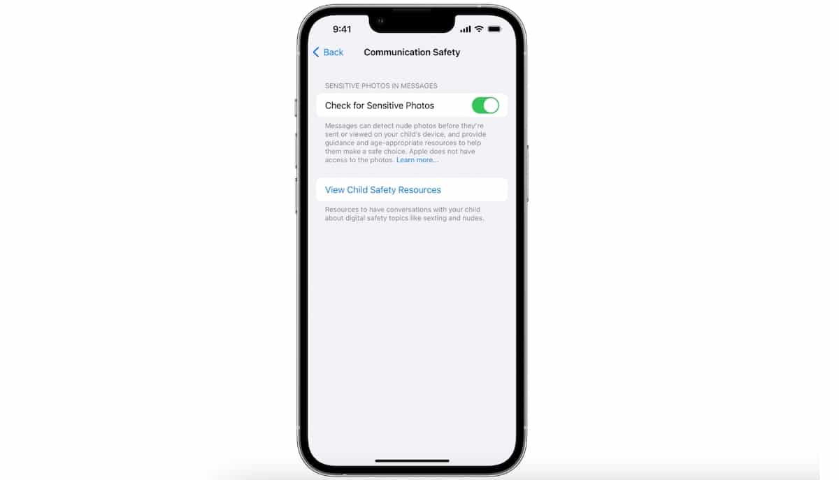 Äskettäin yritys päivitti viestinnän turvallisuuden viestien kanssa, joilla on mahdollisuus havaita alastomuutta viestejen tai kolmansien osapuolien viestisovellusten kautta jaettujen videoiden alastomuuden yhteydessä, kun ominaisuus on kytketty päälle.