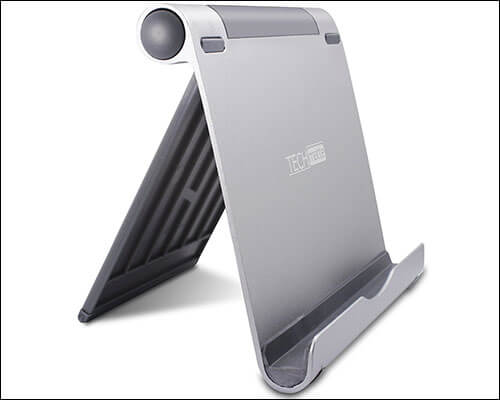 Tämän tablettitelineen houkuttelevin ominaisuus on taitettava muotoilu. Voit kantaa sitä vaivattomasti jopa pienessä taskuissasi, mikä tekee siitä ajoitetun matkan aikana.