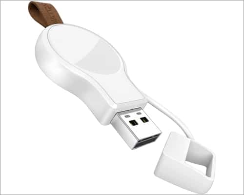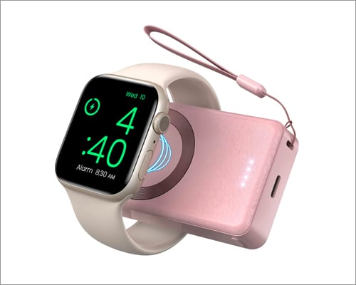 Ei sisällä kaapeleita, joten tämä laturi on erittäin kannettava. Sinun ei tarvitse purkaa sitä, jos se on ollut matkalaukussasi liian kauan. Lisäksi laturin sisäänrakennettu siru on tarpeeksi älykäs lataamaan eri Apple Watch -malleja niiden haluamallaan nopeudella, mikä pidentää akun käyttöikää.