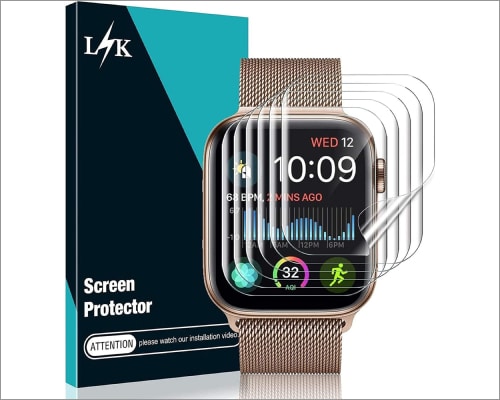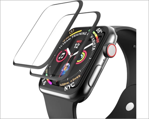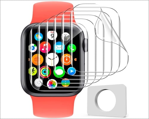 Tämä on jälleen yksi näytönsuoja, joka tarjoaa sotilasluokan suojan Apple-kellosi kosketusnäyttöön. Se, mikä se on hyvällä sijalla, on korkealaatuinen kestomuovinen uretaanimateriaali. Olipa se naarmu, tahra tai ruma sormenjälki, tällä näytönsuojalla on voimaa pitää ne poissa.