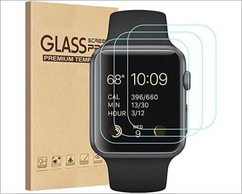 Vahvalla ja joustavalla suojauksella PMMA-pohjainen suojelija ylläpitää kristallinkirkkaan selkeyttä näyttäen Apple Watch -sivusi. Toinen suojelijan houkutteleva osa on, että se tulee kolmen sarjan joukkoon. Voit saada tämän suojan napsauttamalla alla olevaa linkkiä.