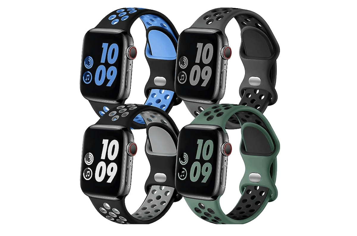 - Adorve tarjoaa 4 urheilurannekkeen pakkauksen Apple Watchille 41 mm ja 45 mm koossa. Ranneke on valmistettu pehmeästä silikonista ja hengittävä muotoilu takaa mukavan istuvuuden.
