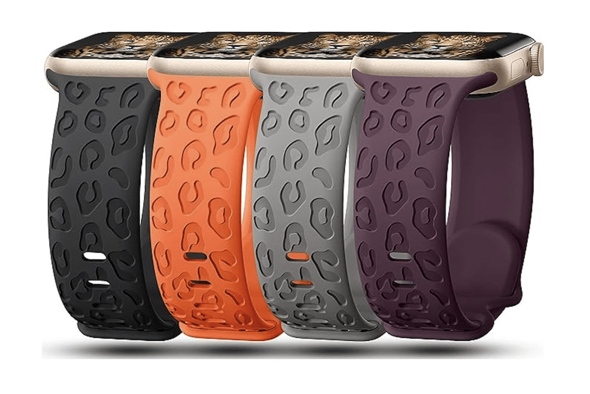 - Jos pidät kellon rannekkeistasi hieman ylimääräisinä, CreateGreat tarjoaa kaiverrettuja rannekkeita, jotka ovat yhteensopivia Apple Watch Series 9:n kanssa 45 mm ja 41 mm koossa ja valikoimassa värejä. Nämä Apple Watch Series 9 -rannekkeet on valmistettu leopardikukkakuvioisesta boho-kuvioisesta pehmeästä silikonista mukavan käytön takaamiseksi.