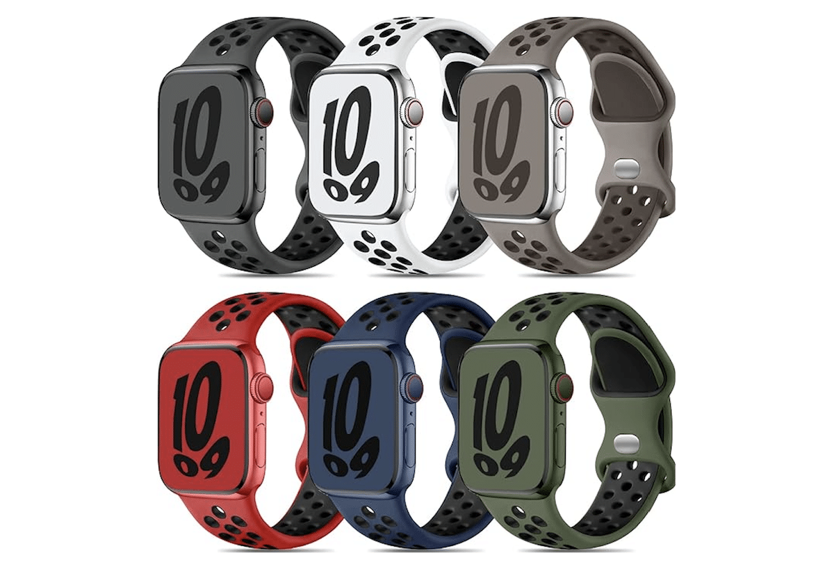 - Lerobo tarjoaa Sport Bandin Apple Watch Series 9:lle 41 mm ja 45 mm koossa. Pehmeät silikoninauhat ovat saatavilla useissa kaksivärisissä vaihtoehdoissa.