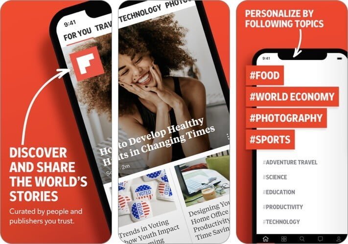 Tässä on sovellus, joka voi auttaa sinua pitämään blogisi ajan tasalla viimeisimmällä trendikäs sisältöllä. Flipboard on all-in-one-lähde kuratoiduille uutisille ja tiedoille, jotka kattavat ainutlaatuiset kiinnostuksen kohteet. Voit mukauttaa sen antamaan sinulle kiinnostuneimmat tarinat, jotka voivat sitten inspiroida sisältöideoita.